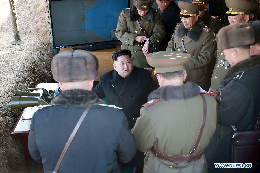 | Photo provided by Korean Central News Agency (KCNA) on Jan. 31, 2015 shows top leader of the Democratic People's Republic of Korea (DPRK) Kim Jong Un (C) inspecting a drill of the Korean People's Army (KPA). The fighter airmen and combined submarine units successively carried out the drill. Kim Jong Un gave instructions for bolstering up the operation capabilities of the units of all services. He said that the DPRK is ready to counter any war including a war by conventional armed forces or a nuclear war. (Xinhua/KCNA) |