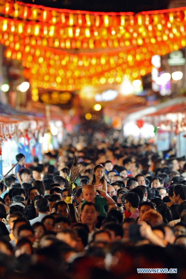 | People attend Singapore's Chinatown Lunar New Year light up ceremony on Jan. 31, 2015.(Xinhua/Then Chih Wey) |