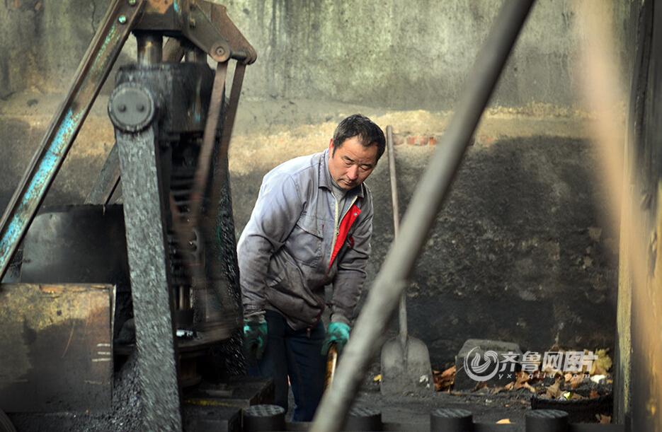 In the courtyard, some old-fashioned coal machines are the main forces for the coal stores. They can produce four tons of honeycomb briquette per hour. (Photo/Iqilu.com)