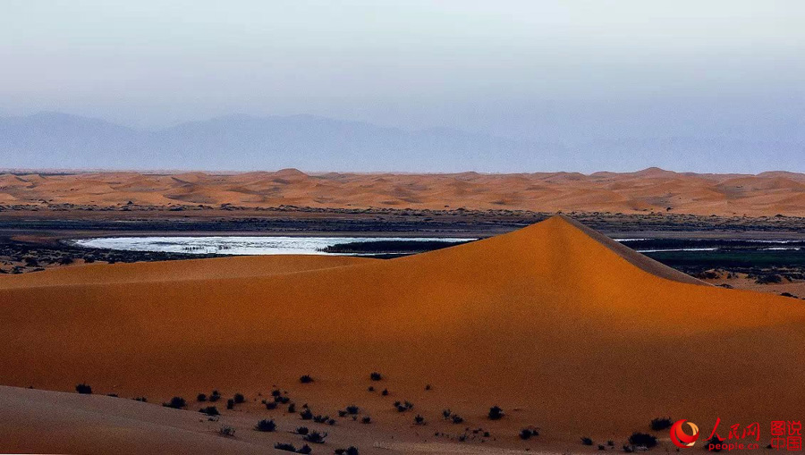 Tengger Desert, located between Helan Mountain and Yabulai Mountain in northwest China, is the fourth largest desert of China, with an area of 42,700 square kilometers. “Tengger” means “sky” in Mongolian, which is to say that the desert is as vast as the sky. (Photo source: people.cn)