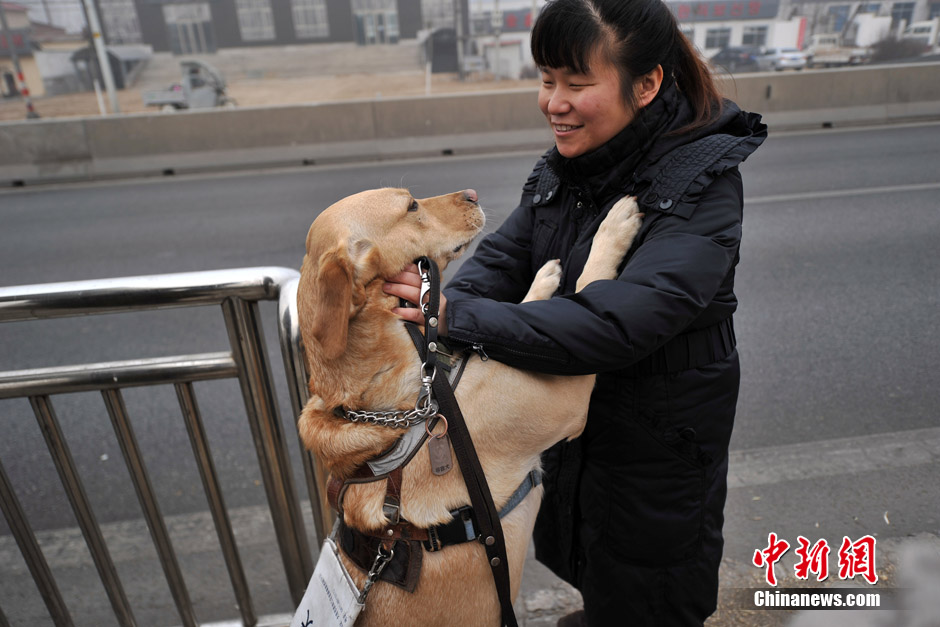 Beijing has 67,000 blind people but it only has 10 guide-dogs for the blind. Most of the dogs are not welcomed in public area. A guide-dog can memorize more than 30 routes. Wu Wenhao runs a massage store with her boyfriend. Her guide-dog Zilong has accompanied her for two years since they met on June 6, 2013. The dog makes her travel more convenient and safer. Wu becomes more patient and happier after she had the dog in her life. (Photo/Jin Shuo)