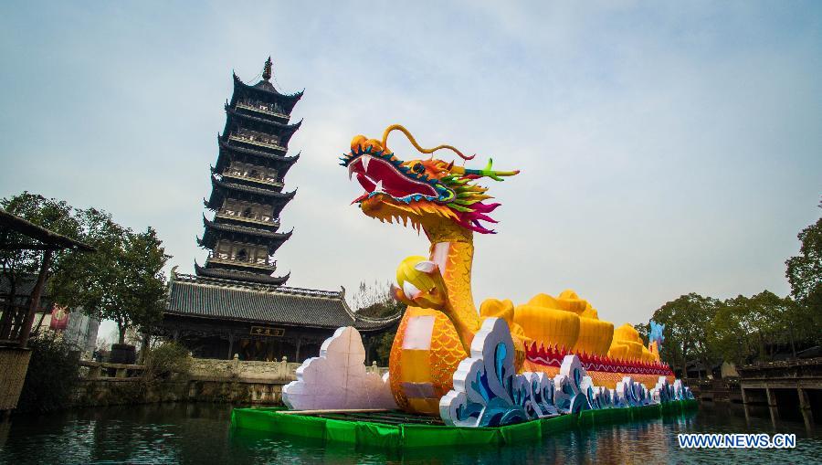 Photo taken on Feb. 6, 2015 shows the festival lanterns in Wuzhen, east China's Zhejiang Province. About twenty groups of festival lanterns were set in the town to celebrate the coming Chinese New Year, or Spring Festival, which falls this year on Feb. 19. (Xinhua/Xu Yu)