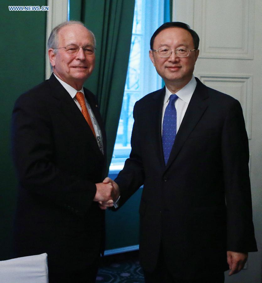 MUNICH, Feb. 7 -- Chinese State Councilor Yang Jiechi met chairman of Munich Security Conference (MSC) Wolfgang Ischinger on Friday when attending the 51st MSC with the two parties agreeing to deepen mutual cooperation.