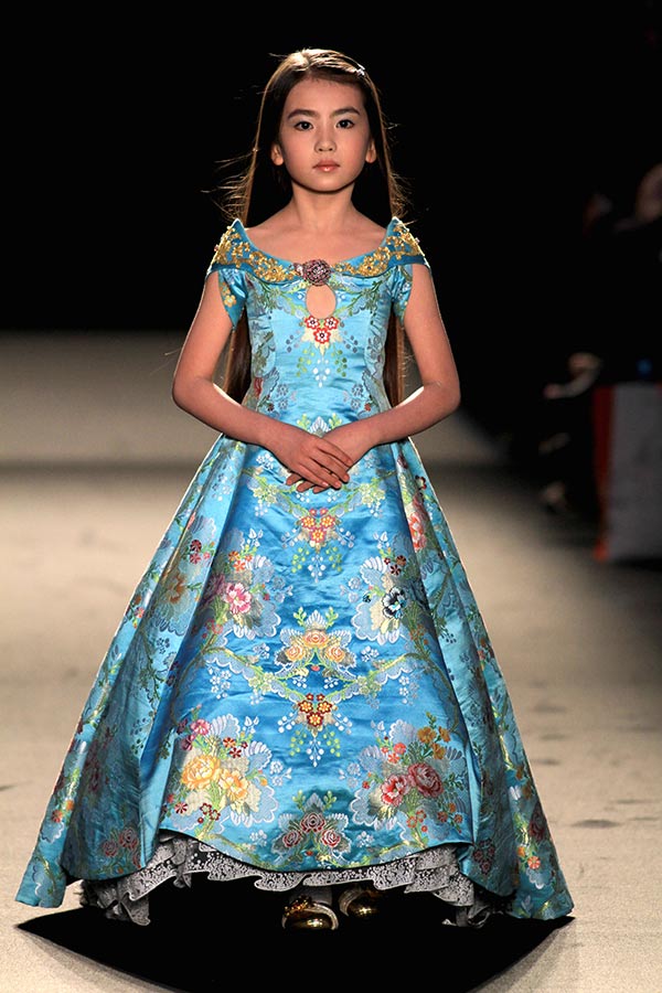 Xiuqiu, a nine-year-old Chinese girl, appears at the 2015 Haute Couture Spring-Summer collection fashion show in Paris. The girl is the first Chinese child model at Paris fashion show. She has won high appreciation from the fashion circle with her unique Chinese character and professional presentation. (Photo/Xinhua)