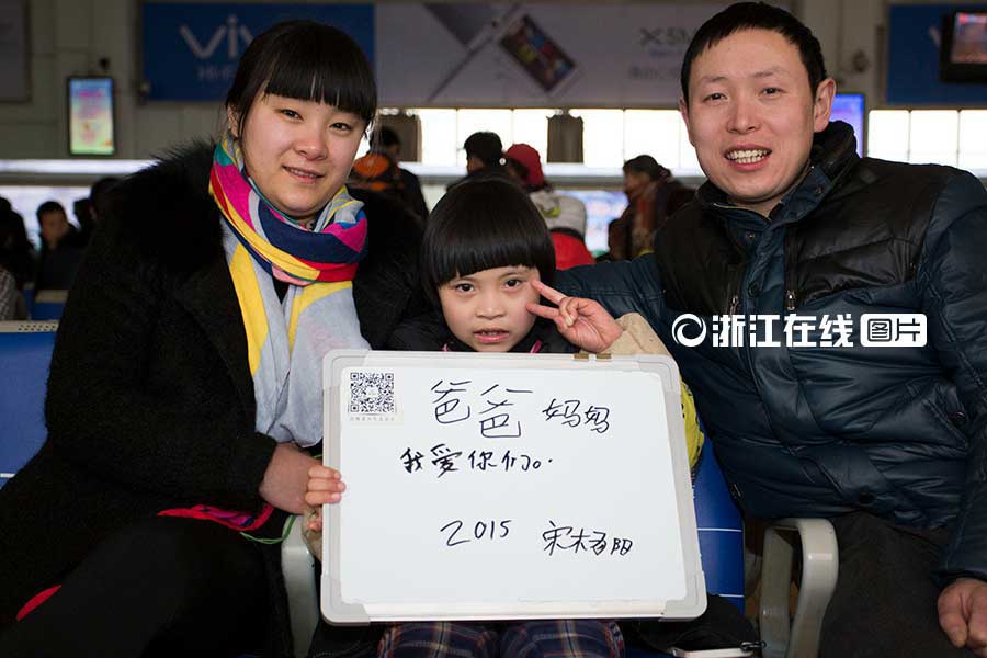 Song Yangyang, 8, writes down the words "I love my father and mother" on the paper. For children, nothing could be better than living with their parents.(Photo/zjol.com.cn)