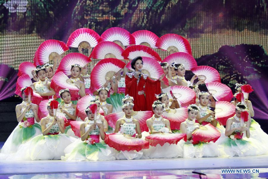 Chinese artists perform during the 2015 Spring Festival Night Show of Cambodia-China relations in Phnom Penh, capital of Cambodia, on Feb. 10, 2015. Approximately 200 Chinese and Cambodian artists on Tuesday evening performed here during the 2015 Spring Festival Night Show. (Xinhua/Sovannara)