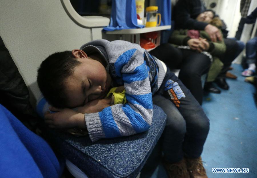 A child sleeps on a chair on train 3663, which runs from east China's Shanghai to Chengdu, capital of southwest China's Sichuan Province, on Sept. 9, 2015. The Spring Festival, or the Chinese lunar New Year which starts from Feb. 19 this year, is known as the world's biggest migration, with millions of people traveling vast distances for family reunions. (Xinhua/Ding Ting)