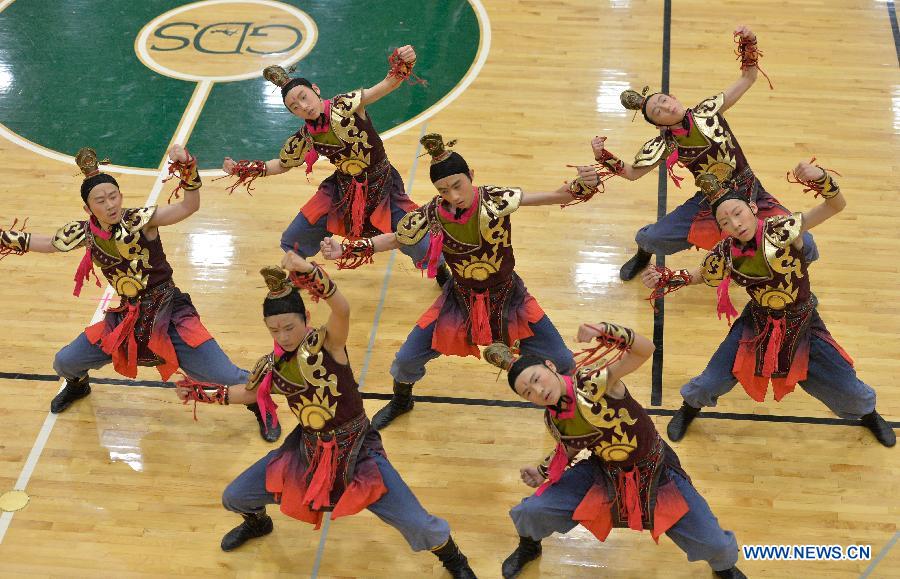 Students from the High School Affiliated to Renmin University of China perform to celebrate the upcoming Chinese lunar New Year, in Washington Feb. 12, 2015. (Xinhua/Bao Dandan)