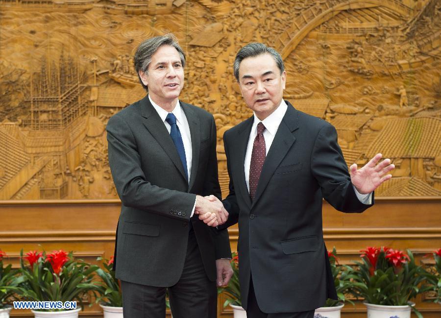 Chinese Foreign Minister Wang Yi (R) meets with U.S. Deputy Secretary of State Tony Blinken in Beijing, China, Feb. 11, 2015. (Xinhua/Xie Huanchi)