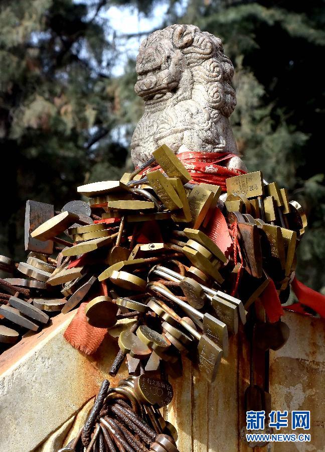 Love padlocks attached to the stone railings in Pujiu Temple, Yongji city, north China's Shanxi province, Dec. 15, 2014. (Xinhua/Wang Song)