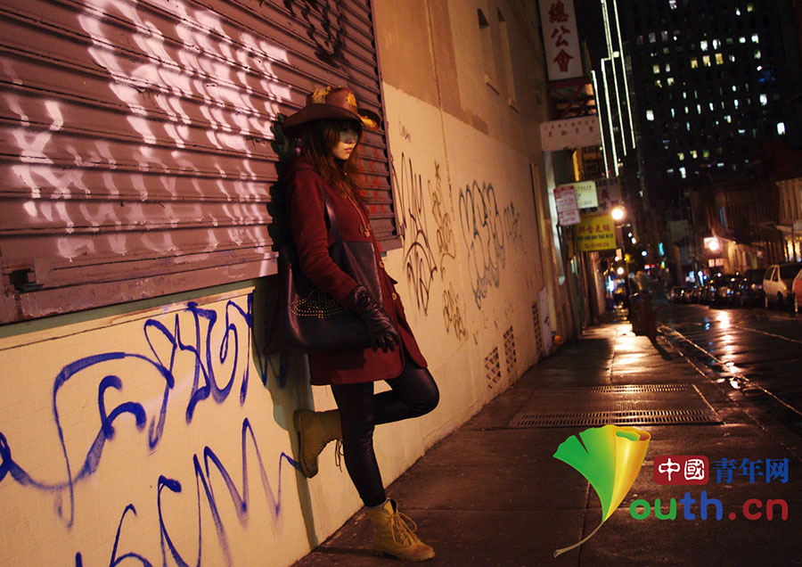 Buddy takes photos in Chinatown. (Youth.cn/Shang Chunzhu)