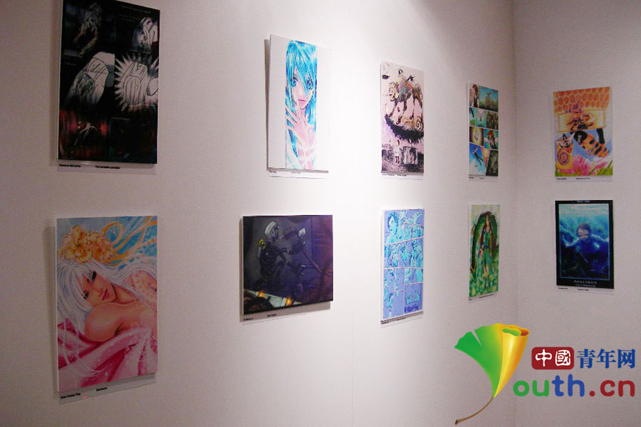 Buddy presents her work (front row L2) in London Cartoon Exhibition. (Youth.cn/Shang Chunzhu)