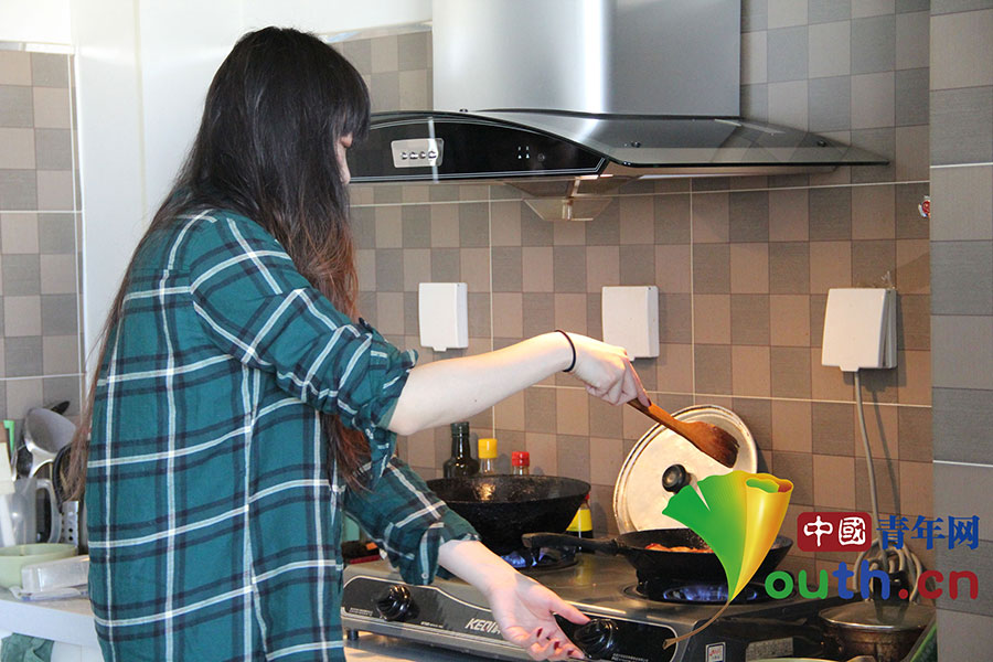 Buddy cooks food. (Youth.cn/Shang Chunzhu)
