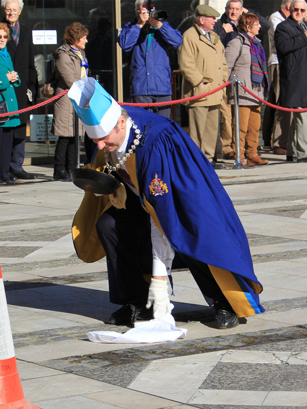 Annually Pancake Day Race held in Guildhall Yard on Tuesday. (People's Daily Online/Bai Tianxing)