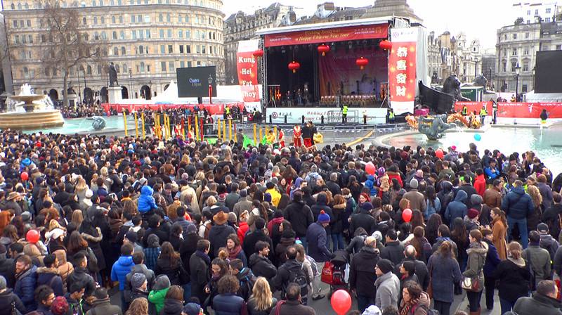 LONDON Feb. 22 (People's Daily Online) —— Known as the largest celebration outside Asia, Chinese New Year Celebration 2015 attracted more than 400 thousand spectators today in London's Trafalgar Square and Chinatown. People from London and around the UK who came along with family enjoyed whole day of Chinese traditional performances. The most popular show is Dragon and Lion Dance. (Bai Tianxing)