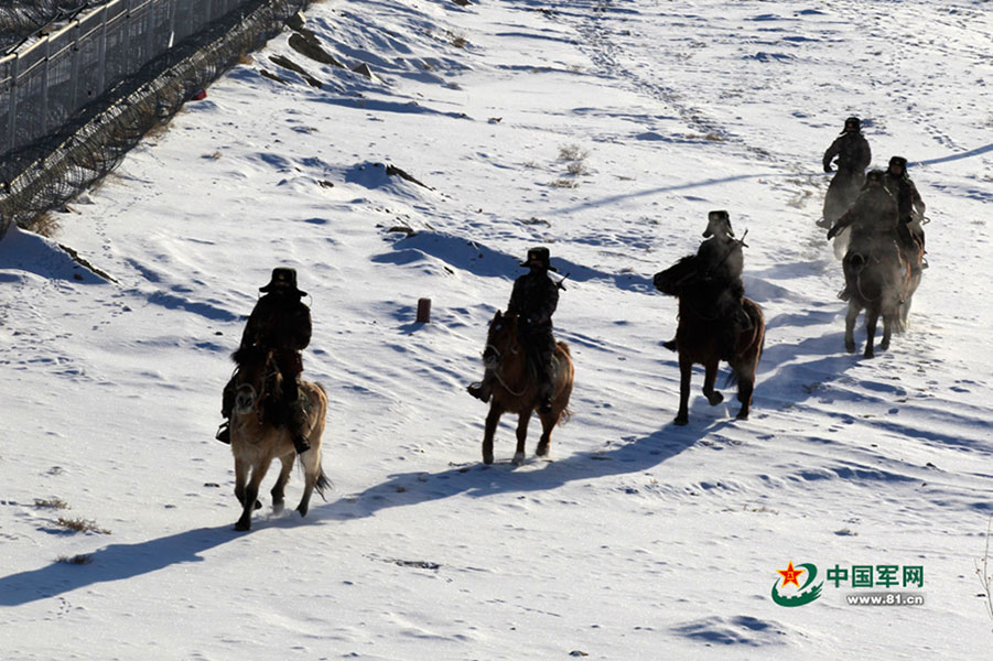 Frontier guards patrol in border areas during the Spring Festival (2)
