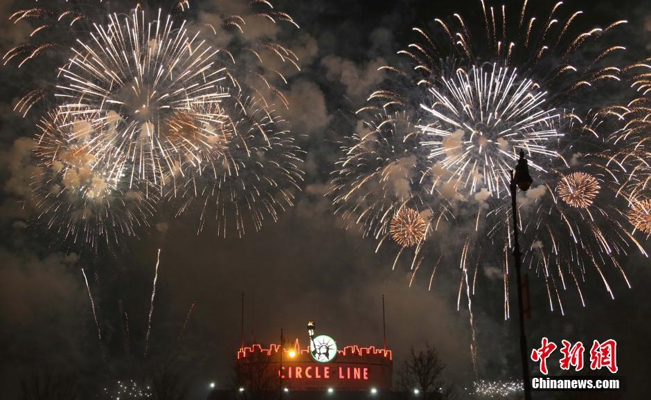A fireworks show is held over the Hudson River in New York on Feb. 17, 2015. The display was the first large-scale fireworks display in the United States to commemorate Chinese Lunar New Year. (CNS Photo)
