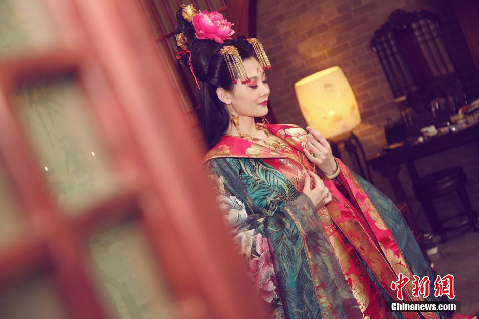 A Chinese couple wears traditional Hanfu at their wedding ceremony in Hangzhou, east China's Zhejiang province on Feb. 23, 2015. (Chinanews.com/Ye Zi)