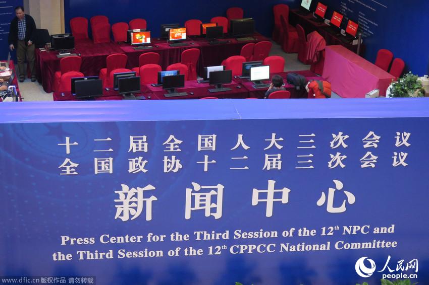Telecommunications and network service center. The press center for the annual sessions of the National People's Congress (NPC) and the Chinese People's Political Consultative Conference (CPPCC) National Committee is under preparation for the opening of the two-week meetings in Beijing on Feb. 26, 2015. A media center for the major political meetings will open from Feb. 27 at the Media Center Hotel in Beijing. (Song Fan/dfic.cn)