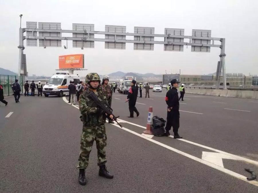 Police on duty at Shenzhen Bao’an International Airport in south China’s Guangdong province after a car accident left at least nine people dead and 23 injured. The driver, a woman who is said to have lost control of her vehicle after a car sounding its horn made her nervous, is being questioned by police. The city’s emergency center said seven of the injured are in a critical condition. (Photo/Xinhua)