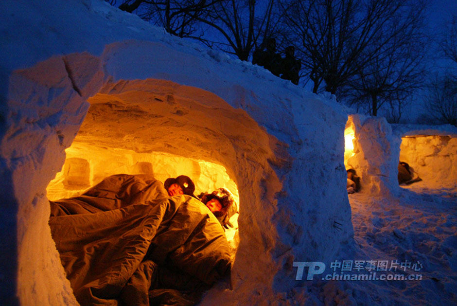 6The soldiers brave the severe weather of minus 20 degrees Celsius and sleep quietly in the snow caves. (Photo/www.81.cn)