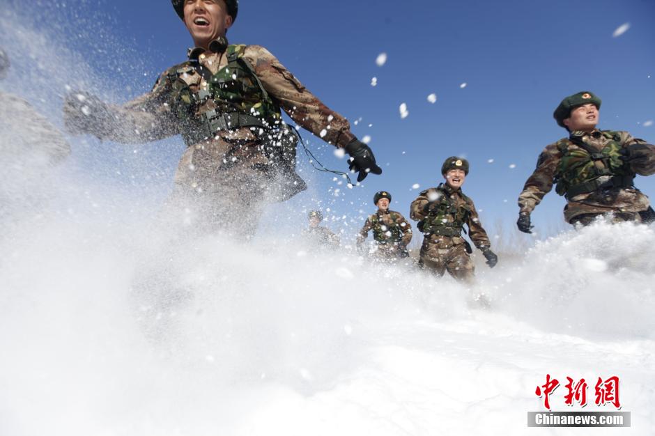 An infantry company which enjoys the title of "Tiger Company" has extreme training under harsh weather condition in Heihe city, Heilongjiang, March 2, 2015. Taking advantage of the local frigid climate, soldiers in Heihe work even harder to be qualified servicemen. (Chinanews/Wei Jianshun)