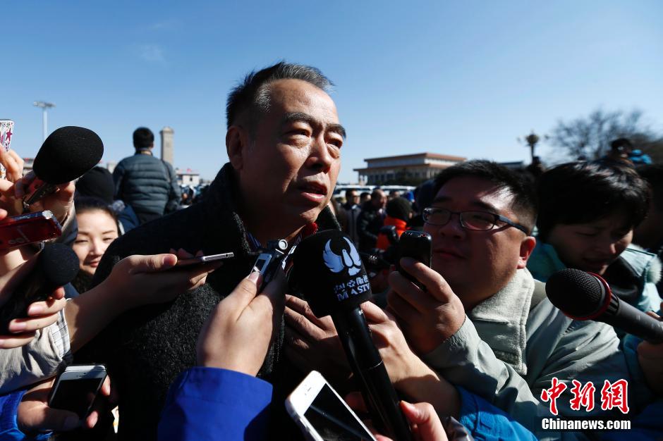 Famous movie director Chen Kaige, a member of the 12th National Committee of the Chinese People's Political Consultative Conference (CPPCC), attends the opening ceremony of the CPPCC session on March 3, 2015. (Photo/CNS)