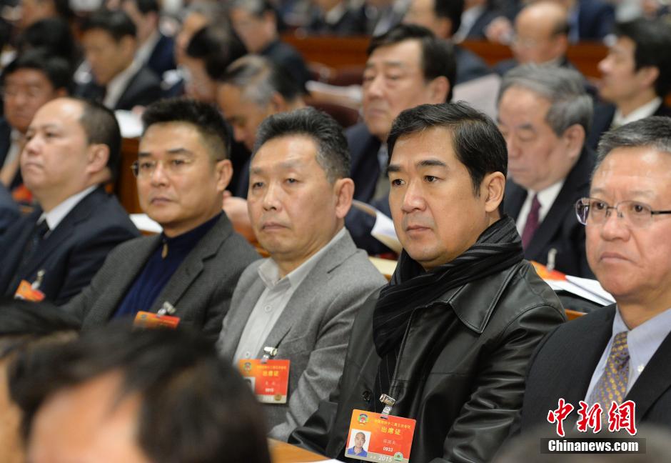 Zhang Guoli, a famous TV drama actor who is also a member of the 12th National Committee of the Chinese People's Political Consultative Conference (CPPCC), attends the opening ceremony of the CPPCC session on March 3, 2015. (Photo/CNS)