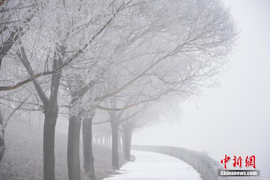 On March 3, 2015, beautiful rime turns the Songhua River into a fairyland in Jilin city, northeast China's Jilin province. (CNS/Wang Mingming)