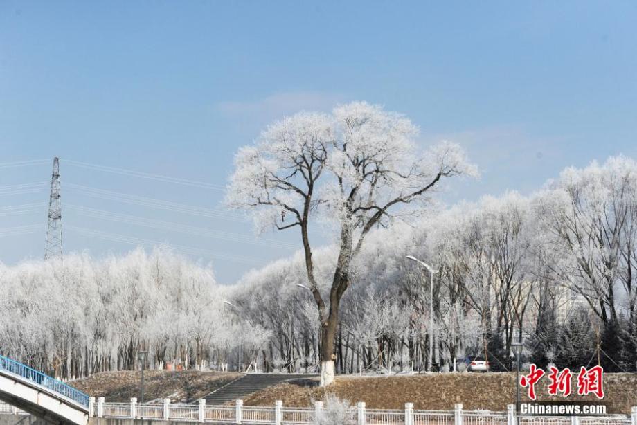 On March 3, 2015, beautiful rime turns the Songhua River into a fairyland in Jilin city, northeast China's Jilin province. (CNS/Wang Mingming)