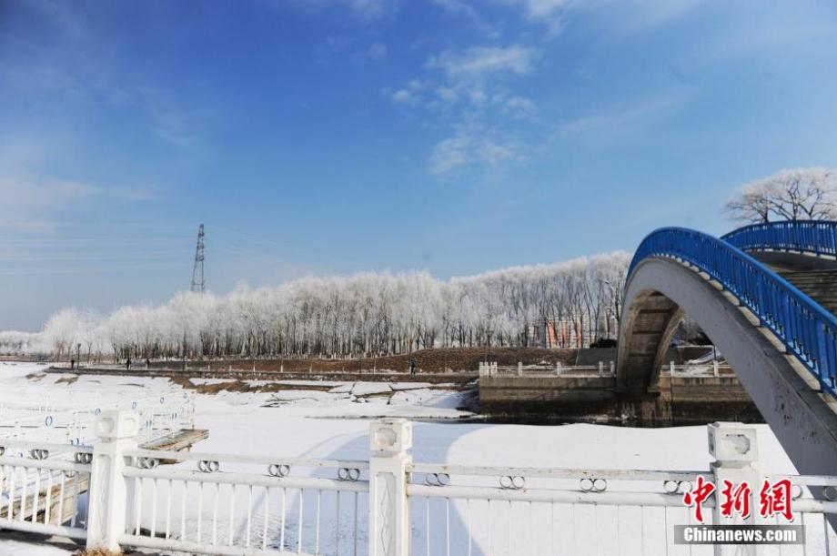On March 3, 2015, beautiful rime turns the Songhua River into a fairyland in Jilin city, northeast China's Jilin province. (CNS/Wang Mingming)