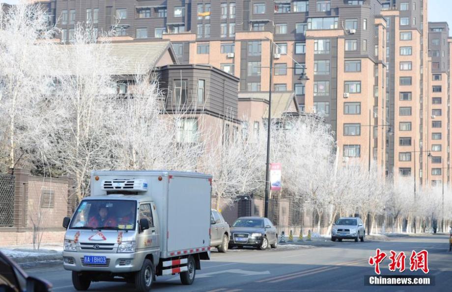 On March 3, 2015, beautiful rime turns the Songhua River into a fairyland in Jilin city, northeast China's Jilin province. (CNS/Wang Mingming)
