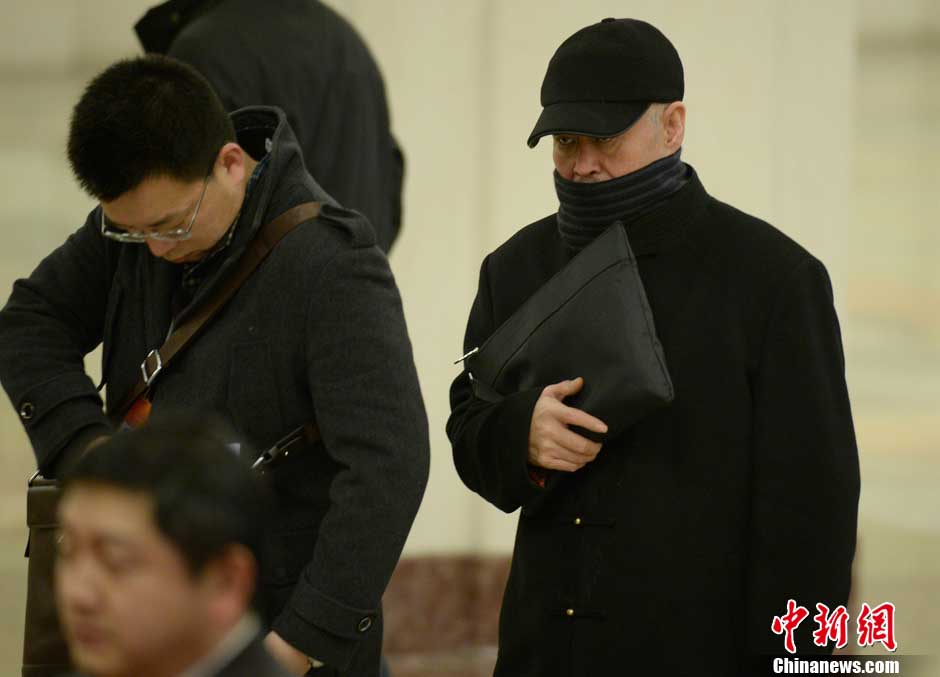 Skit and sitcom actor Zhao Benshan, who is a member of the 12th National Committee of the Chinese People's Political Consultative Conference (CPPCC), attends the opening meeting of the third session of the 12th National People's Congress. (Photo/Chinanews.com)