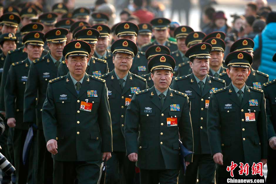 Military representatives attend the opening meeting of the third session of the 12th National People's Congress. (Photo/Chinanews.com)