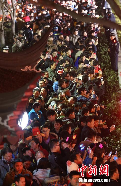 According to information released by the local police, a total of 520,000 people visited the Qinhuai Lantern Fair on the night of Lantern Festival in Nanjing, capital of east China's Jiangsu province on March 5, 2015. Qinhuai Lantern Fair is a popular folk cultural activity in Nanjing, mainly held during the period from the Spring Festival to the Lantern Festival (CNS/Yang Bo)