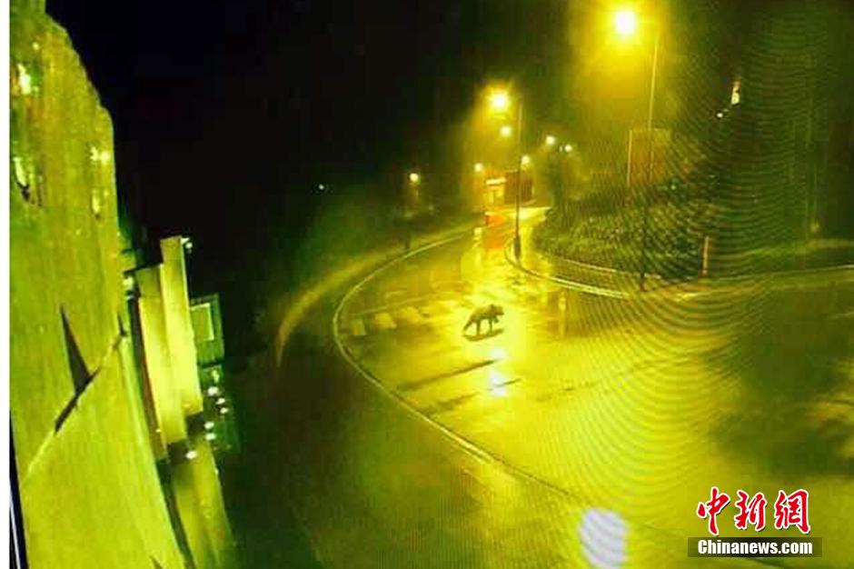In the video, the giant panda at first appeared in the green belt near a scenic spot and then crossed the street. It tried to enter the scenic spot by clinging to the iron gate, but unsuccessfully. Then it crossed two zebra crossings, and finally entered the scenic spot by jumping over the flower bed area. At last it disappeared in the darkness. According to the manager of the scenic spot, the panda did not show up again.