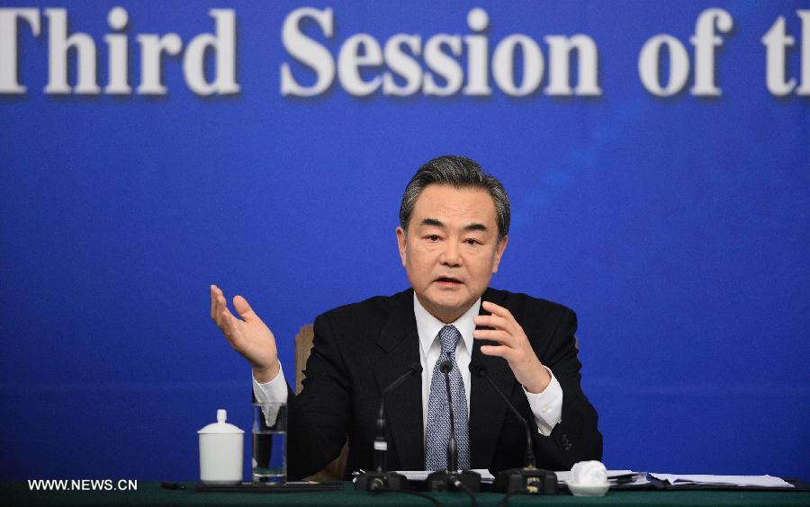 Chinese Foreign Minister Wang Yi gives a press conference for the third session of China's 12th National People's Congress (NPC) in Beijing, capital of China, March 8, 2015. (Xinhua/Li Xiang)