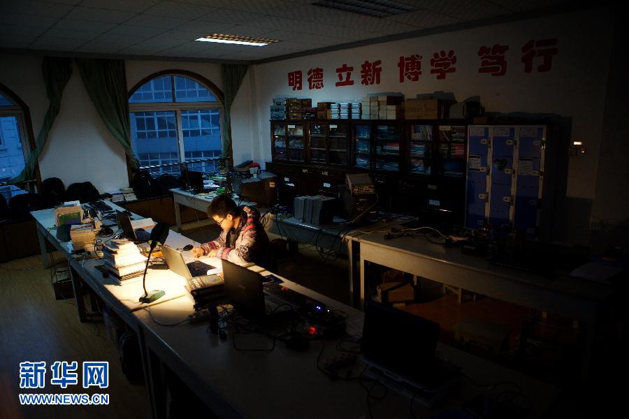 Zhang Hailong does research in the lab on March 2, 2015. (Xinhua/Hu Chenhuan)