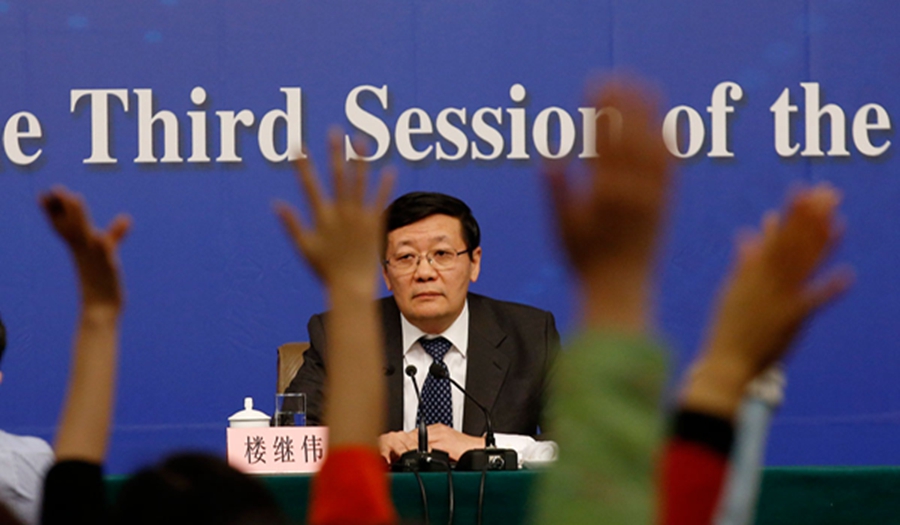 Chinese finance minister Lou Jiwei answers questions of the journalists at a press conference for the third session of China's 12th National People's Congress (NPC) for fiscal and tax reform. (Reuters Photo)