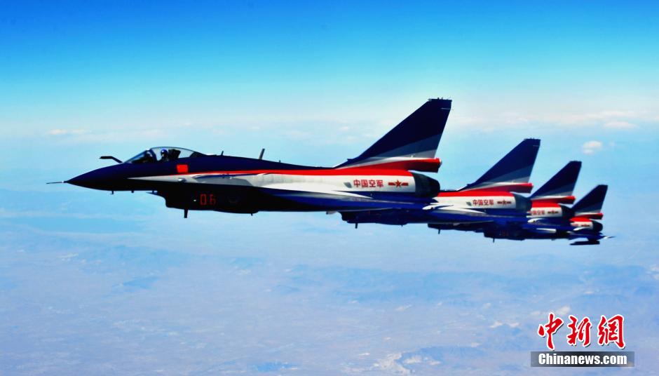 The Bayi Aerobatic Team flies in formation at the air show. (CNS/ Zhang Pengyan)