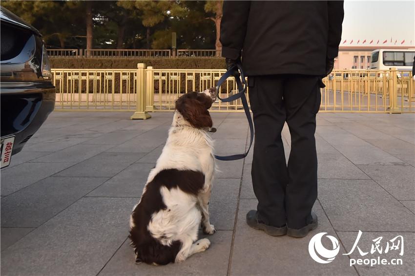 Dog patrols in Tiananmen Square. (People's Daily Online/Weng Qiyu)