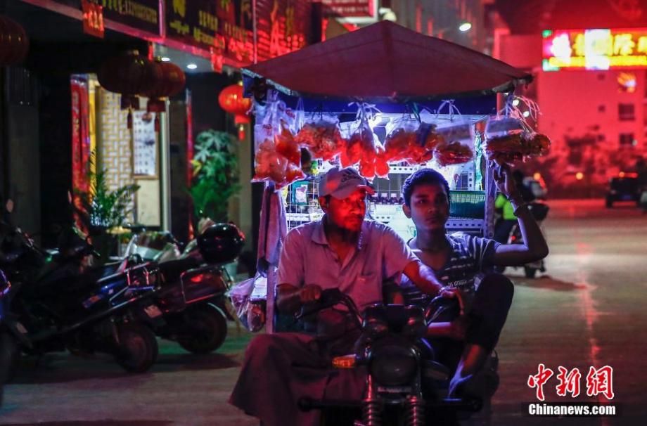 Two Myanmar hawkers sell the home catering in the market on Mar. 10. (CNS/Zhang Hao)