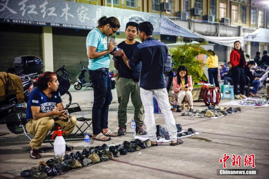 The gem merchants in the night market. (CNS/Zhang Hao)