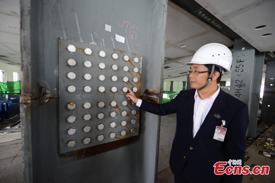 | A 57-story skyscraper is in its final stage in Changsha, capital of Central China’s Hunan province, Mar 17, 2015. With its steel frame structure standing tall, the building was finished in just 19 days with 1,200 workers working round-the-clock, said He Youxian, an executive overseeing the construction site. The building can withstand 9 magnitude earthquake. (Photo: China News Service/ Yang Huafeng) |