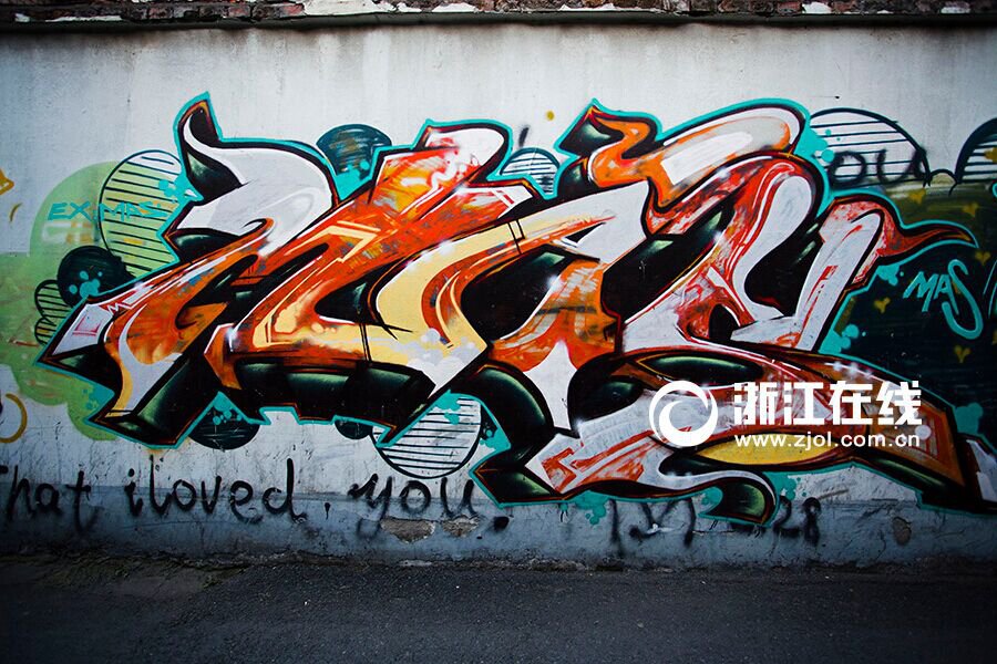 New graffiti on the walls of Youyong Alley in Hangzhou attract pedestrians’ attention and slow their steps down. The color splash on the walls gives people a reason to slow down and enjoy the beauty of life. (Zhejiang Online/Tong Xiaolei)