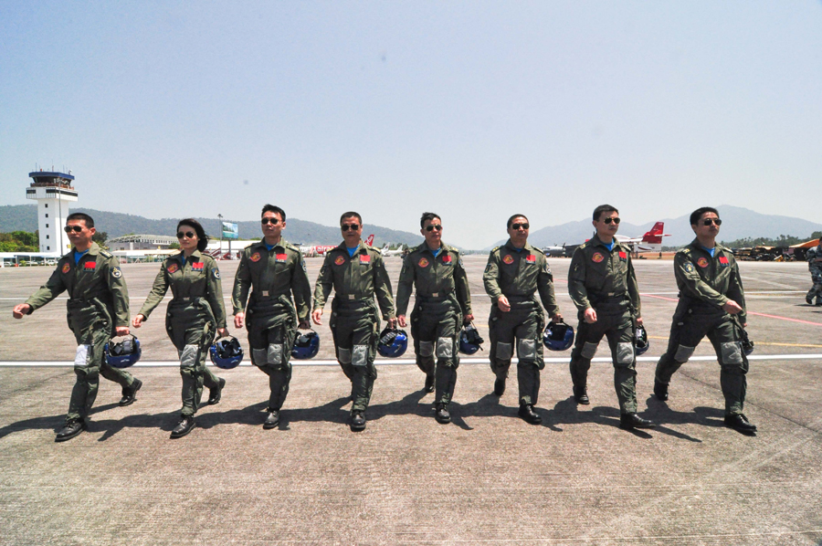Eight fighter pilots from China are ready to perform missions in LIMA on March 17, 2015. (Xinhua/Zhang Wenzong)