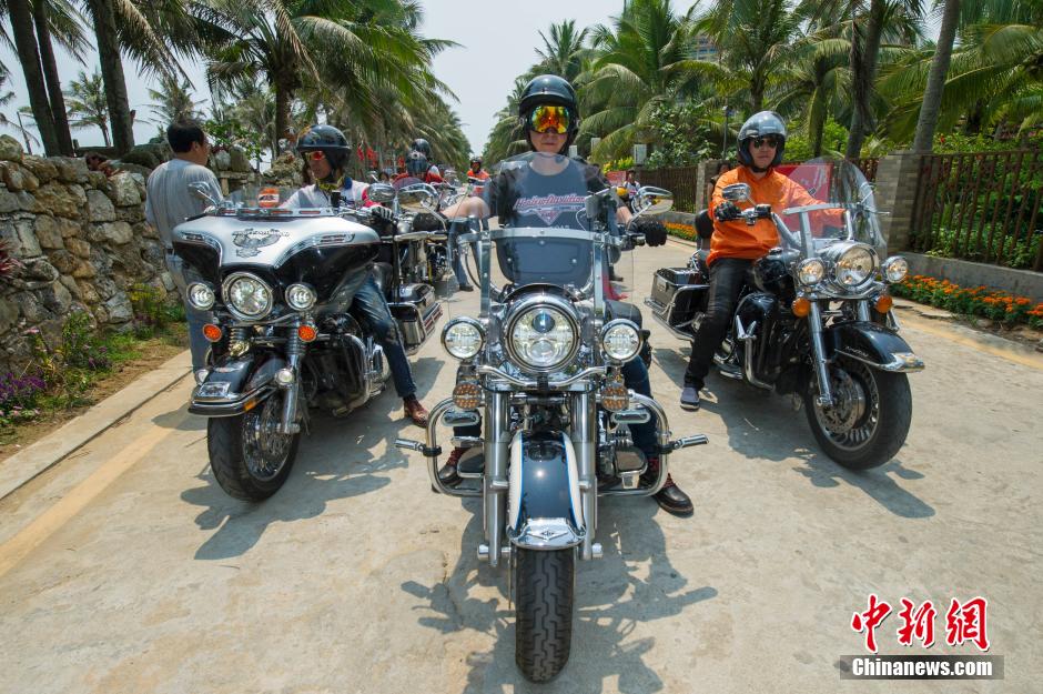 A team of Harley riders showed up in Boao, Hainan on March 18, 2015. There are over 30 Harley motorcycles in the motorcade, and most of the riders are senior executives or managers from companies in Shanghai. The average age of the riders is over 35, and the oldest one is over 60 years old. (Chinanews/Luo Yunfei)
