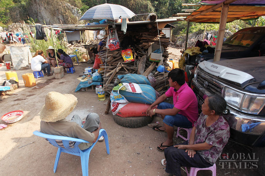 More than 20 families take refuge in an abandoned quarry near Nansan county, Yunnan Province. (Photo: Cui Meng/GT)