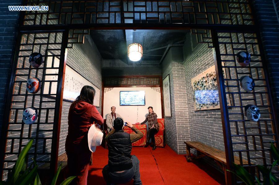 | People visit the Ganju Opera museum in Nanchang, capital of east China's Jiangxi Province, March 22, 2015. China's first Ganju Opera museum, which introduced the origin, famous performers and development history of the traditional local opera, opened in Nanchang on Sunday. (Xinhua/Wan Xiang) |