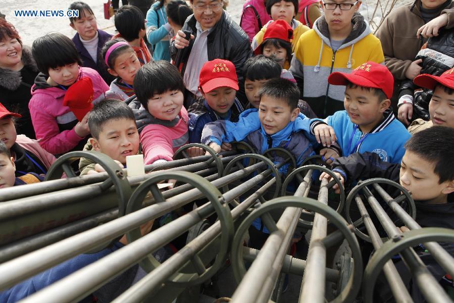 Students take a look at meteorological devices in the meteorological department of Yanggu County, east China's Shandong province, March 22, 2015. The World Meteorological Day falls on Monday this year. (Photo: Xinhua/Xiao Minglei)